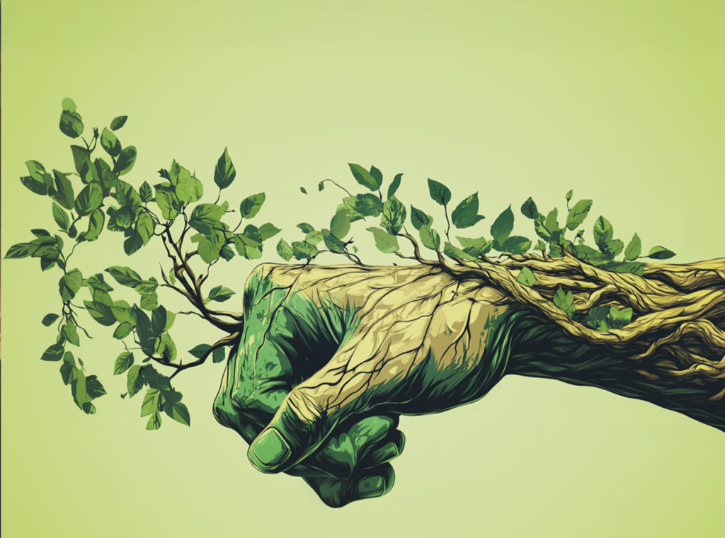 Unya looked down at her arm. It was coarse and greenish brown. It cracked like tree bark, and even as she watched it leaves sprouted from her. “Weapons never help. I have a song.”