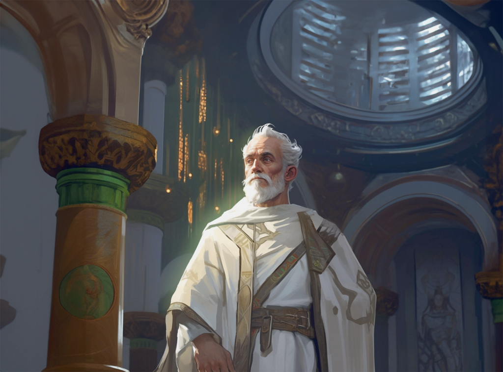 “Two things, before you go,” Djoln interrupted. “None of the windows open, don’t try. There are only two doors, the front one you came in, and then a hatch to the cellar. Close the doors quickly behind you. I’ve cultivated the worship room nicely, and I’m hoping you’ll help me tend to it every day. It makes the space much more palatable.”