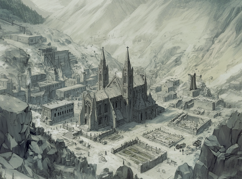 With the mood softened, the two shared banter and some pastries as the shuttle descended upon the little mining town of Docide. Lucca gawked at the shape of the city. It featured two large glass domes with dozens of structures inside each of them. Between the domes and sprawling to the south were shacks and wagons, slums for people who couldn’t afford the property in the domes and the oxygen it provided. It was there, nestled among the shacks, where Lucca could spot the unmistakable shape of Djoln’s monastery. He had seen sketches of it before, and it was exactly as he had imagined.